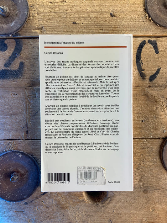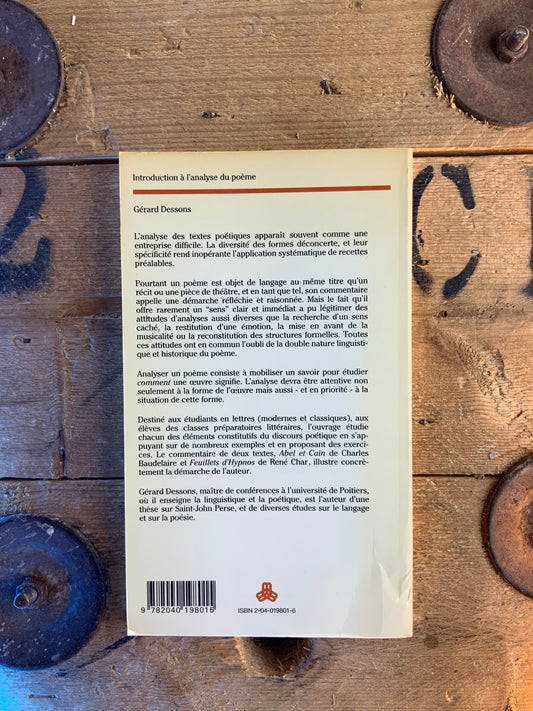 Introduction à l’analyse du poème - Gérard Dessons